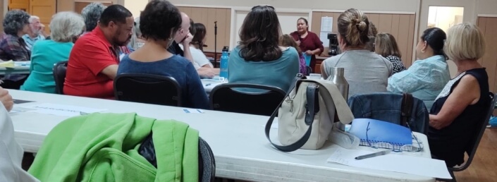Jo Salas, a member of UIDN’s Schools Outreach Committee, opened the session by telling the group, “Our job is to strengthen what the schools are already doing, to build connections, and respond to needs.”