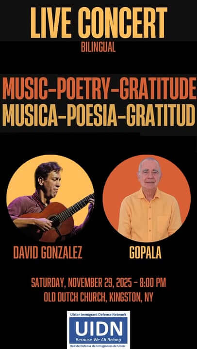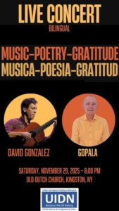 Poetry and music featuring the Spanish poet known as Gopala and David Gonzalez, a local poet, storyteller, playwright, and musician. The performance will be in both Spanish and English. Tickets are by donation. For more information, email rainart.david@gmail.com.