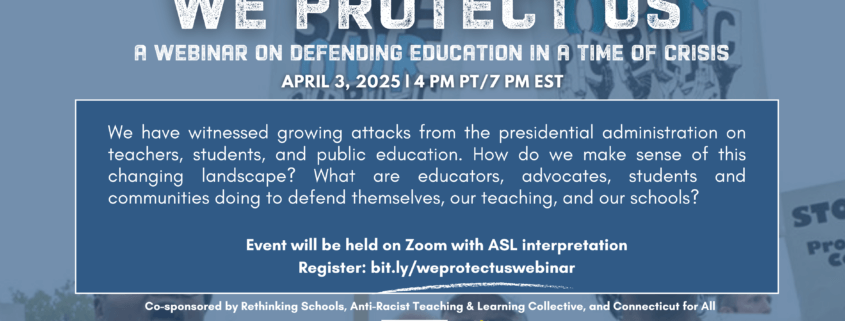 Three nationally recognized legal experts will open the webinar. In the second part leading organizers and educators will describe action they are taking to defend schools, communities, & students including Tabitha Sookdeo, ED, CT Students for a Dream on how immigrant students are defending their schools and communities.