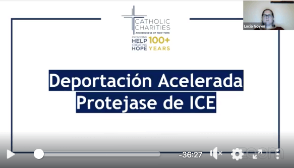 Immigration lawyers at Catholic Charities have posted, in Spanish and English, the webinar shown on this page to explain immigrants’ rights under existing ICE rules on expedited removal. The policy went into effect on October 20, 2020. ICE uses expedited removal to quickly deport people without allowing them to first see an immigration judge.